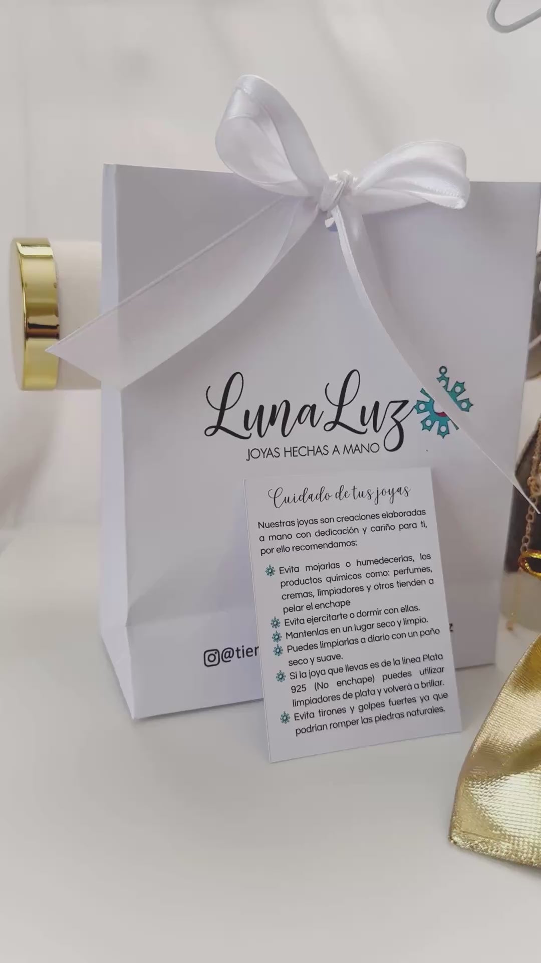 También te incluimos una tarjeta con los cuidados que debes tener para conservar por mucho tiempo tus joyas Lunaluz.